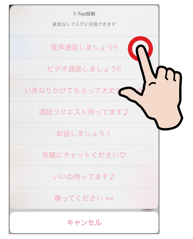 ここは「今、話せますよ」ということをお知らせできる場所で、アプリ内で多くの男性がチェックしています。
