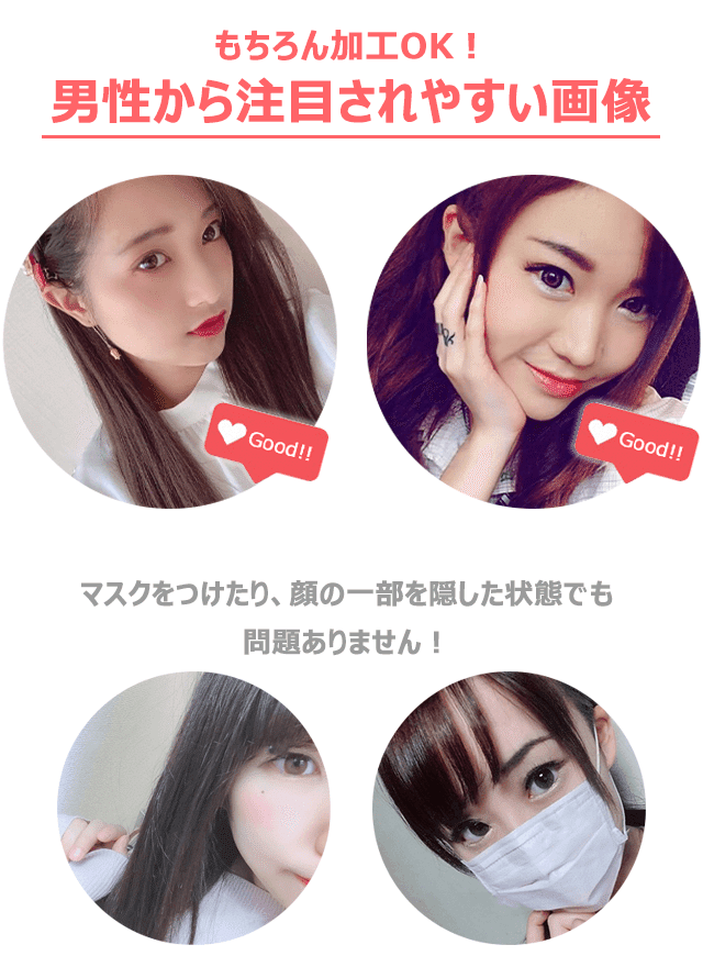 その場合は、男性ウケの良い雰囲気の画像や、自然に盛れる加工アプリを活用するのがおすすめです。